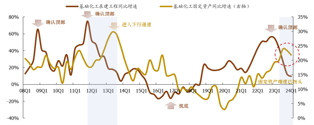 1、化工股走过利润拐点。化工固定资产增速是利润的前瞻指标。固定资产增速拐头回落,意味行业产能扩建期结束,新产能对产品的价格冲击也边际减少,按历史规律行业利润也会在产能扩建见顶后上行,该逻辑已在一季度发生。