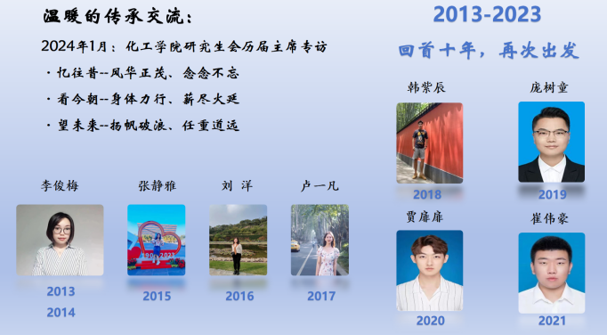 化梦为翼,工启新章;回首十年,再次出发。化工学院研究生会将继续发挥桥梁作用,坚持服务研究生成长成才,助力学院培养德才兼备的高层次人才。