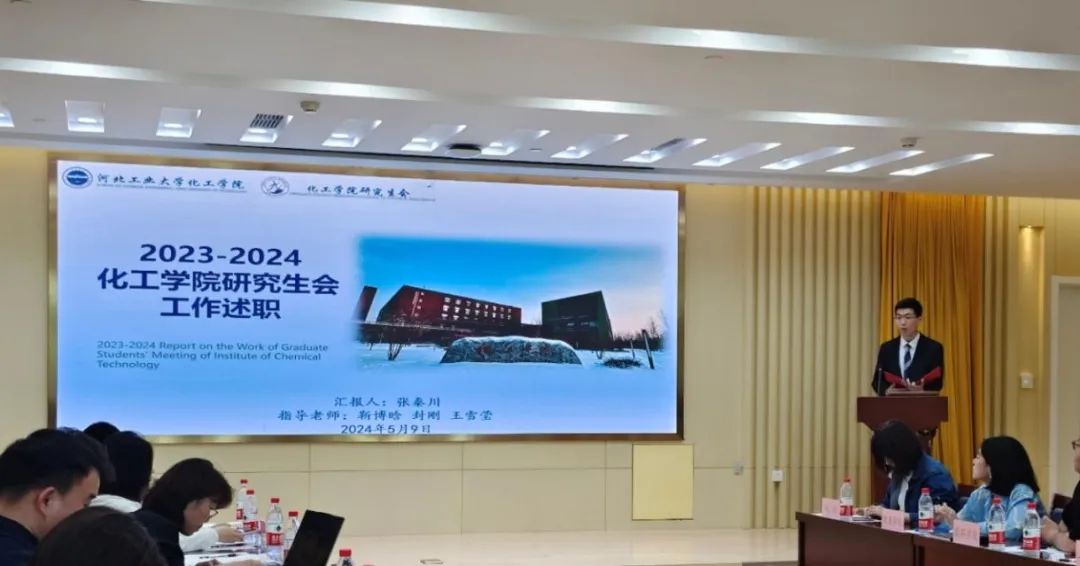 2024年5月9日下午,河北工业大学2023—2024学年院研究生会述职汇报会在北辰校区图书馆第三会议室顺利举行。我院研究生会主席张秦川围绕组织机构建设、服务与权益维护、校园文化活动和未来展望等方面进行了述职答辩。经评议,我院研究生会从15个学院的研究生会中脱颖而出,荣获我校2023 - 2024学年“优秀研究生会标兵”称号,名列第二位。校团委副书记崔毅老师为优秀研究生会标兵进行了颁奖。