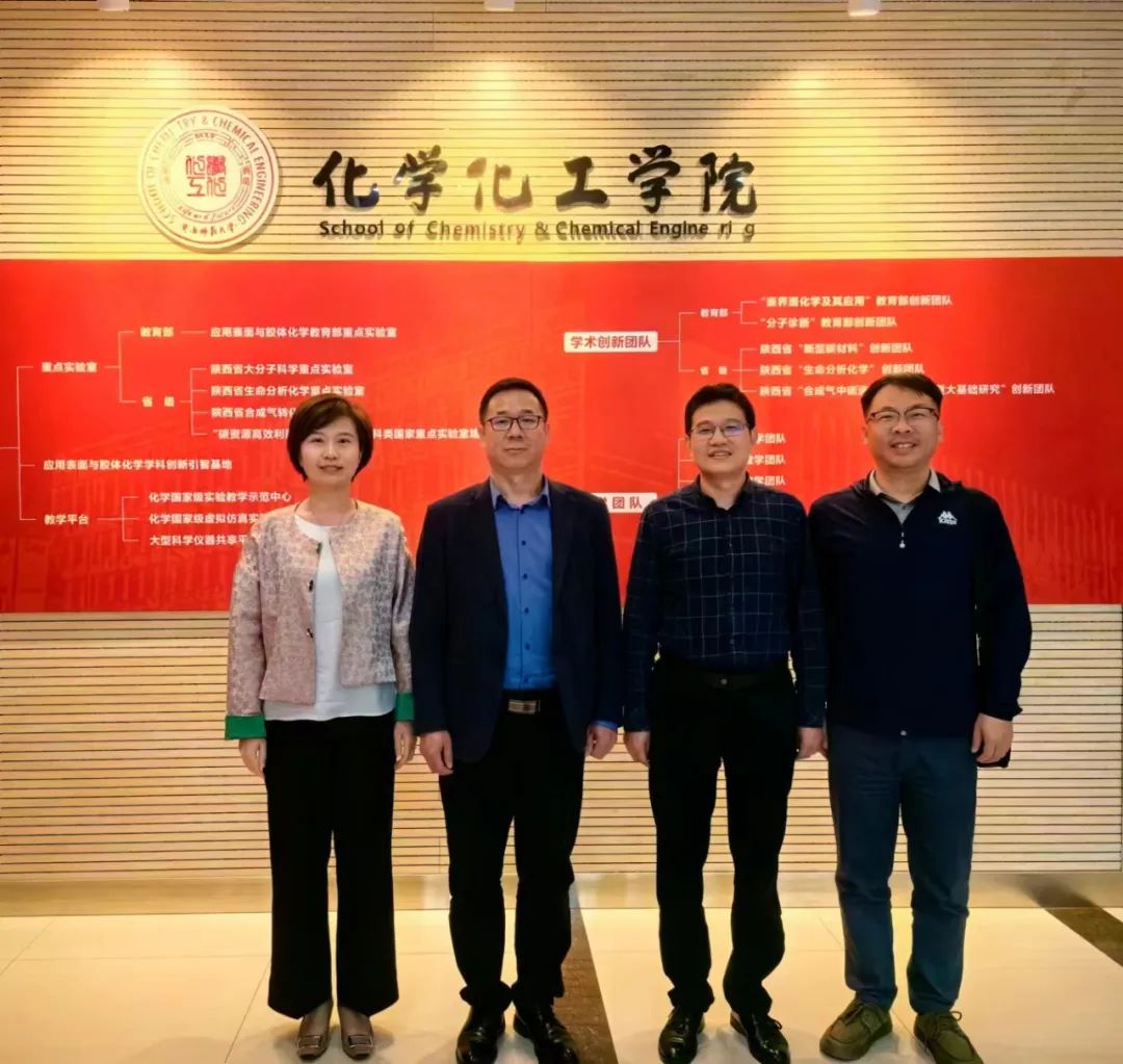 5月8日我院党委书记林海河,党委副书记、副院长范磊,院学科办主任贾晶春一行赴陕西师范大学化学化工学院、材料科学与工程学院开展工作交流。