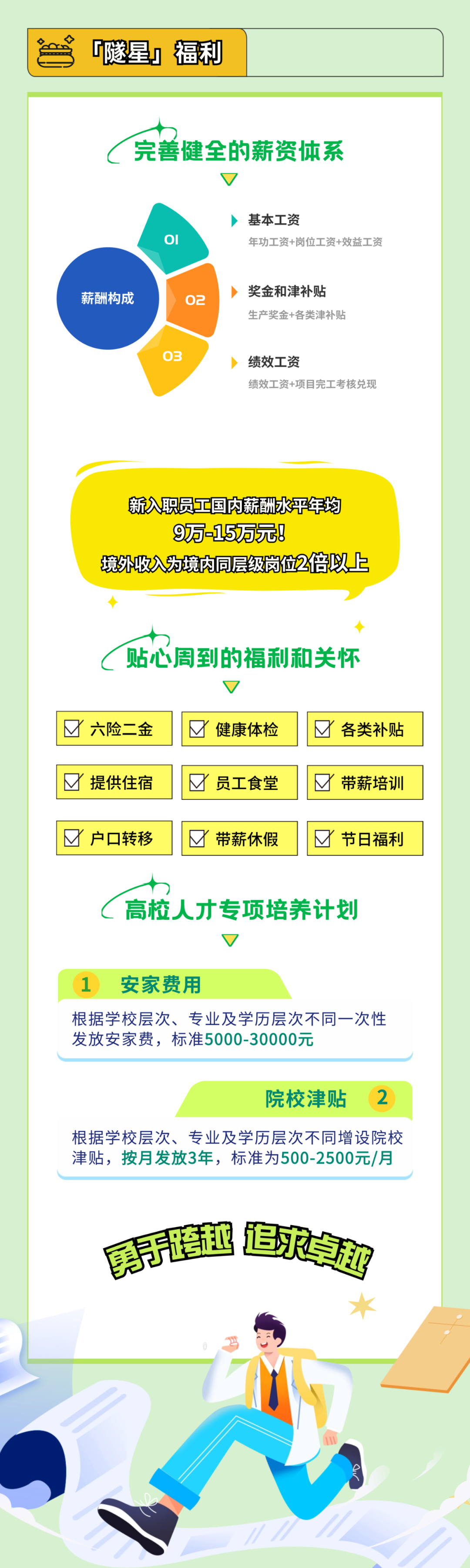 福利保障:“五险一金”+补充医疗保险+重大疾病保险+人身意外保险+企业年金等。