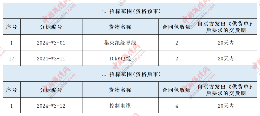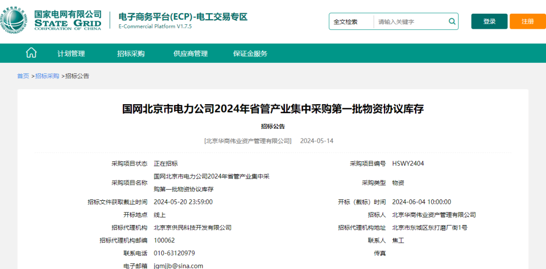【招标公告】国网北京2024年第一次配网物资协议库存公开招标采购项目(线缆类)招标公告