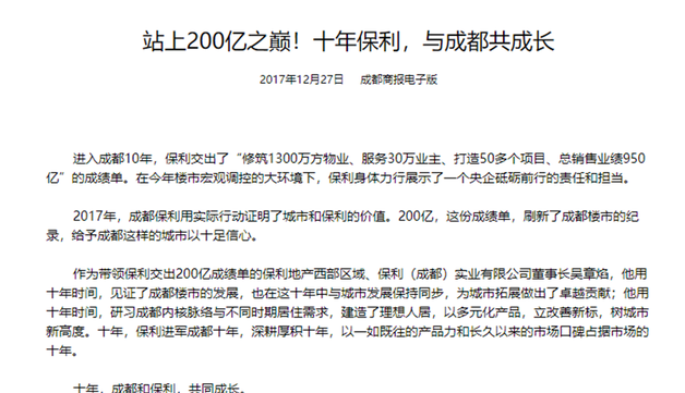 吴章焰的职业生涯并不平凡。他在地产行业摸爬滚打多年,从一个普通的职员逐渐晋升到了保利公司的要职。保利公司作为一家知名的地产企业,其在成都市场的布局与竞争无疑是备受瞩目的。吴章焰作为公司中的关键人物,其在保利(成都)实业有限公司的角色和业绩更是不可或缺的一部分。