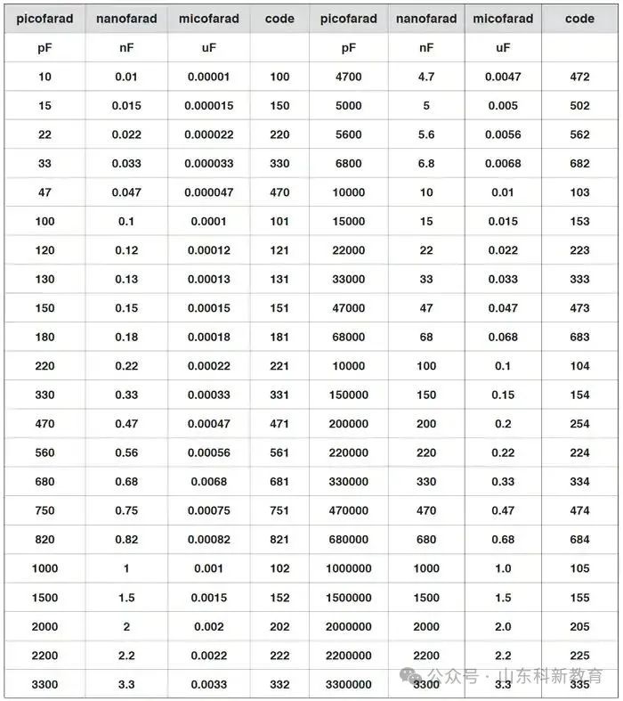 11、电容器换算表