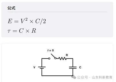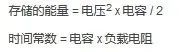 时间常数(T)可由电容(C)和负载电阻(R)的值确定。电容器(E)中存储的能量(E)由两个输入确定,即由电压(V)和电容(C)决定。