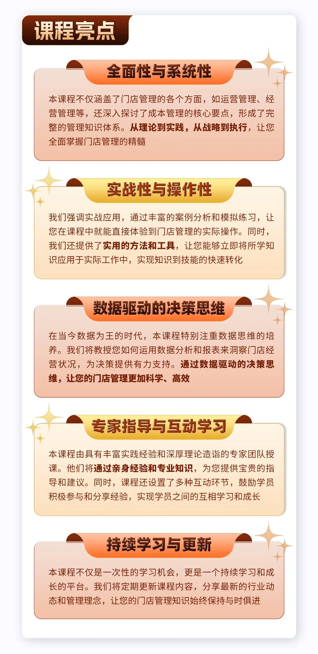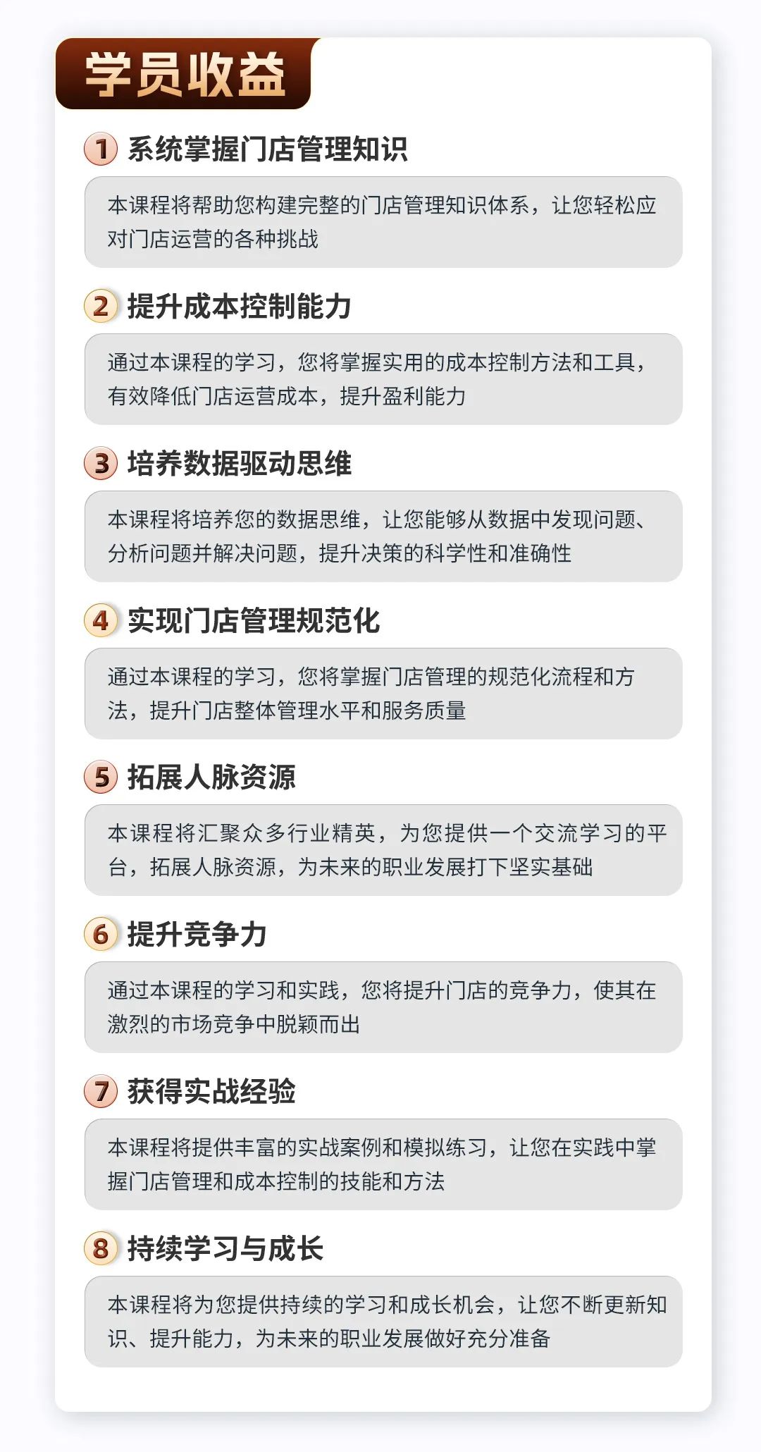 这门课程旨在帮助餐饮企业系统地掌握全面成本管理的理念和方法,通过实战操作和深入案例分析,让学员们真正理解和运用这些技能。