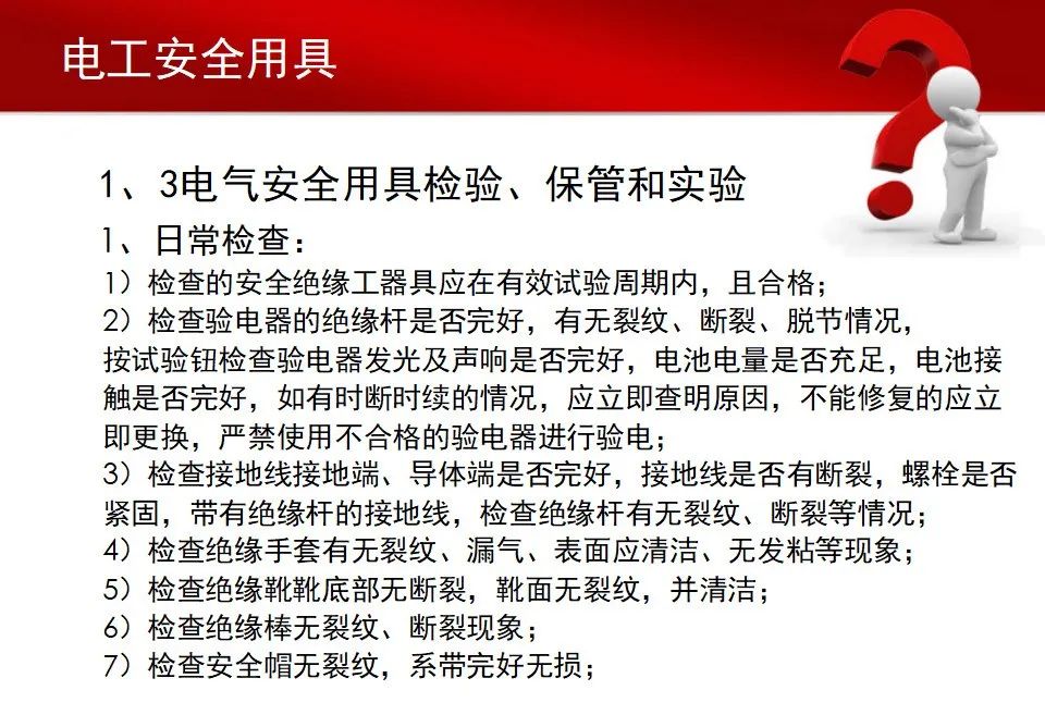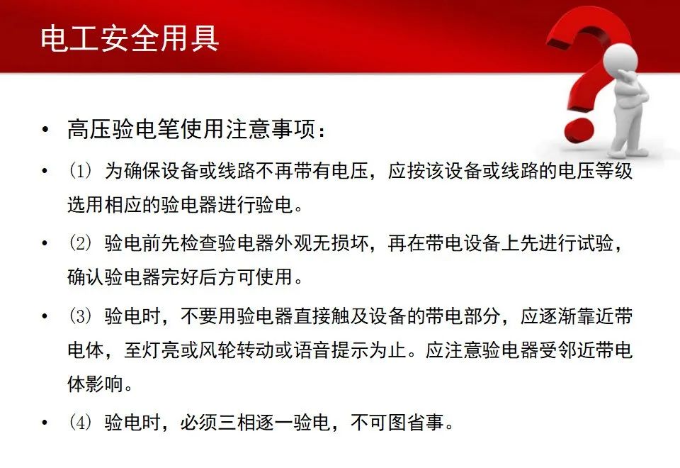 d.应经常在带电体上试测,以检查是否完好。不可靠的验电笔不准使用。