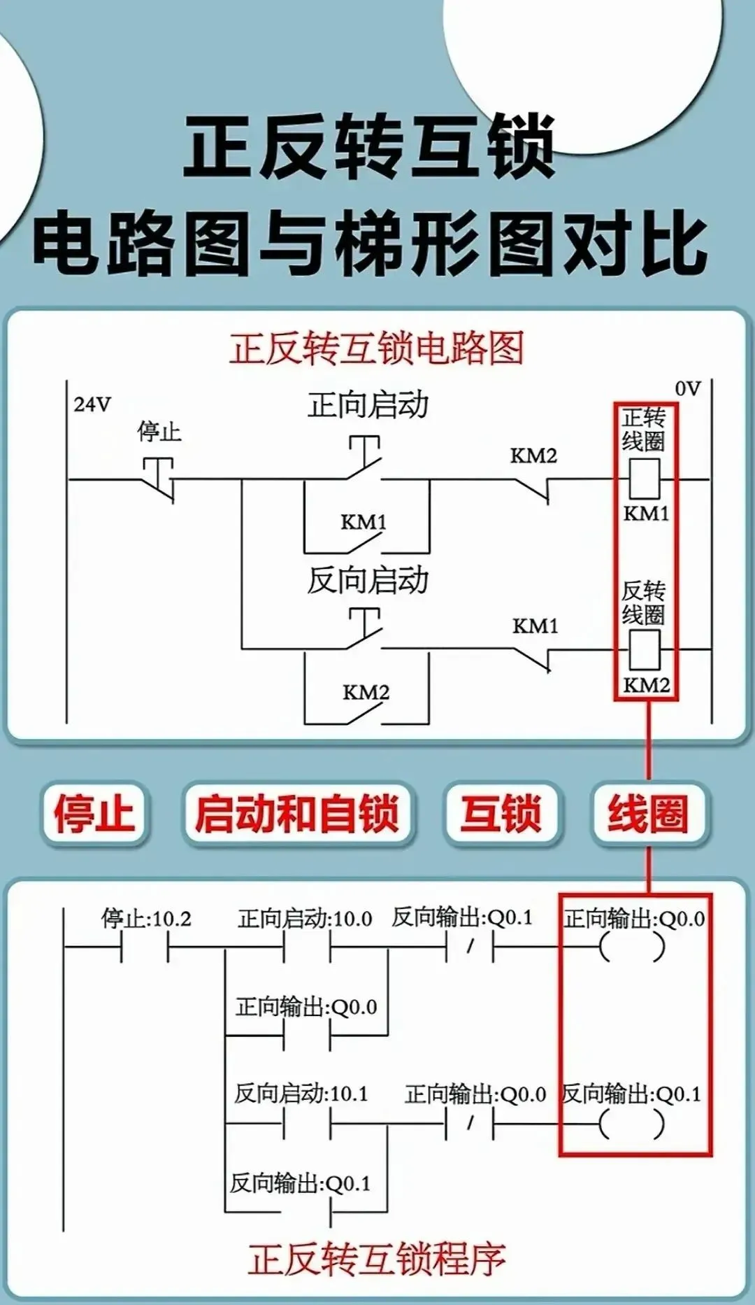 23.正反转互锁电路图与梯形图对比说明