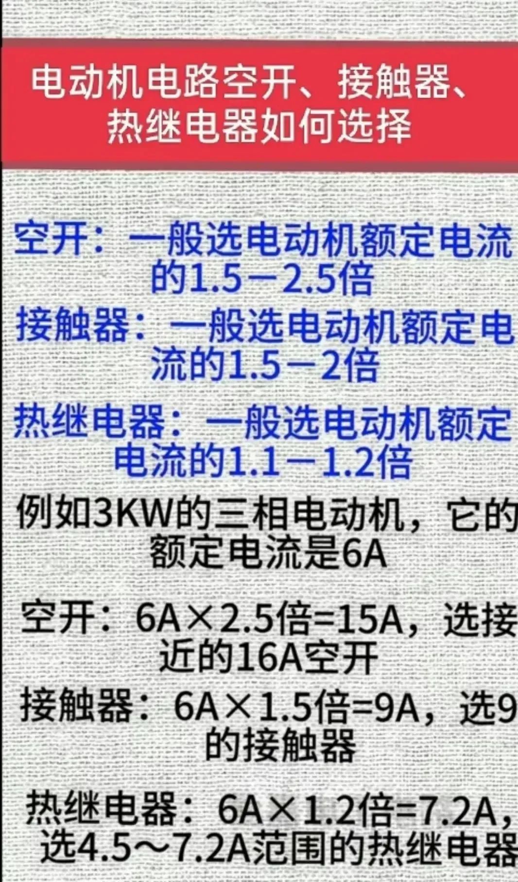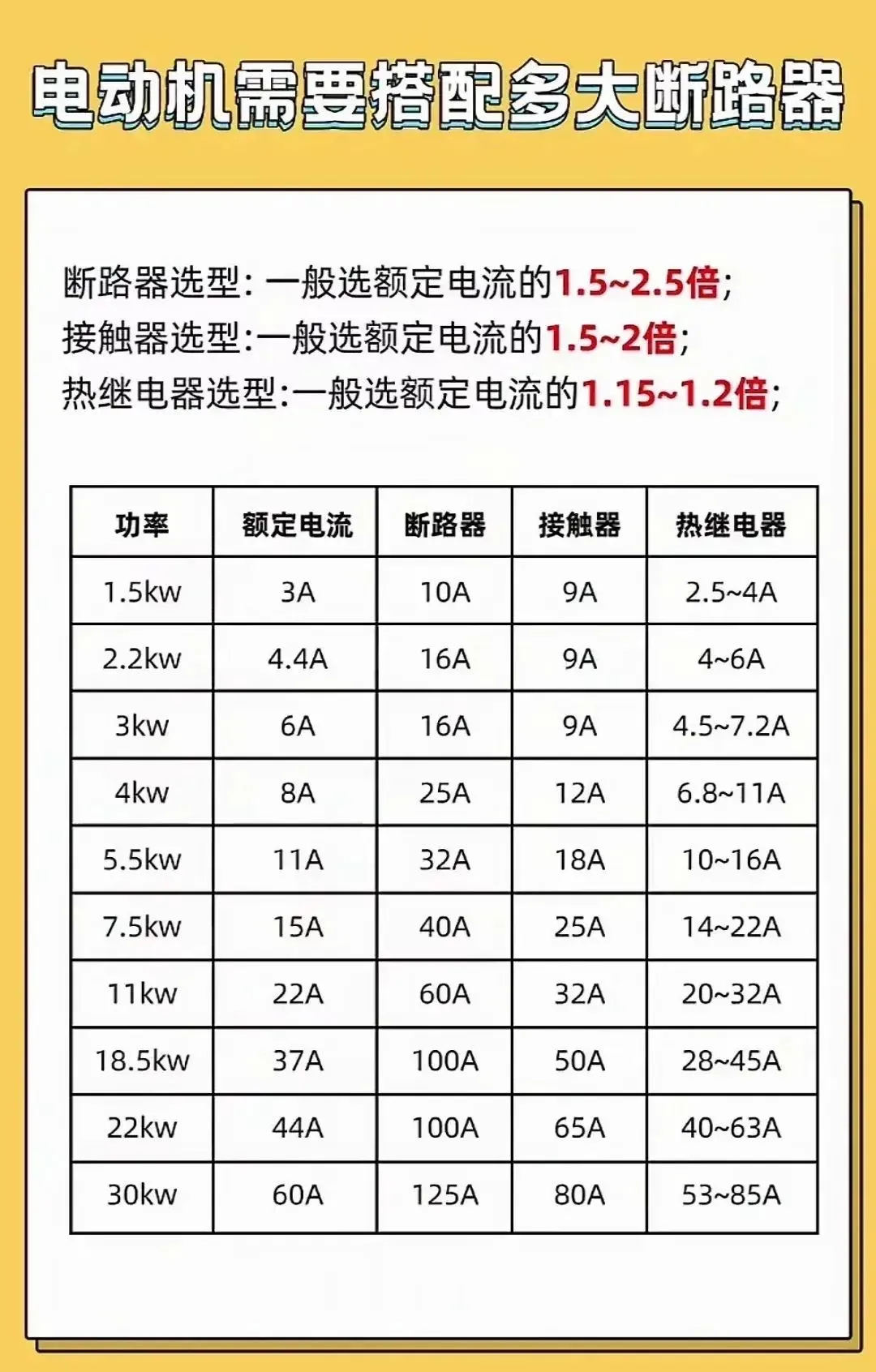 50.电动机电路空开、接触器、热继电器的选型方法