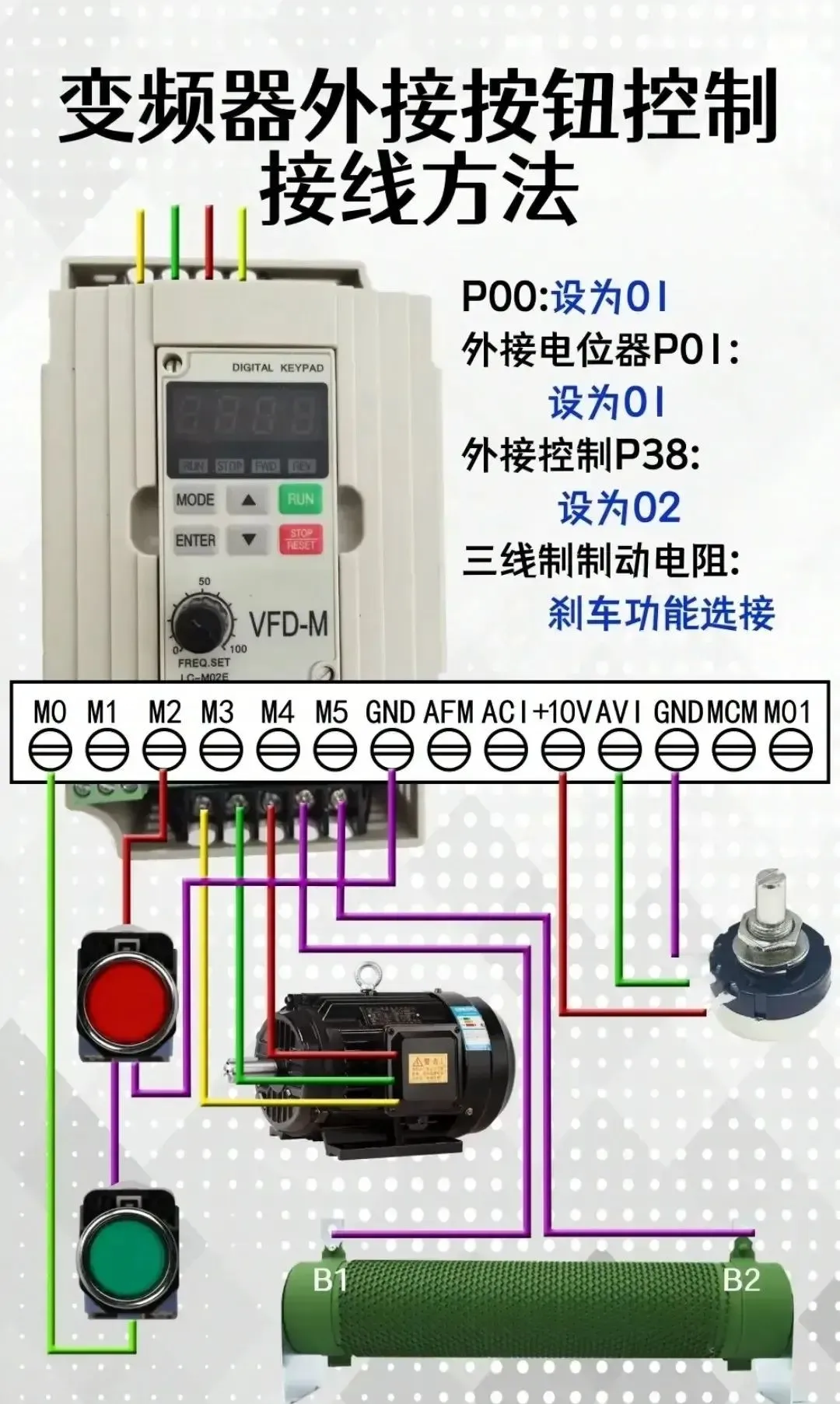 5.变频器外接按钮接线方法和参数解析