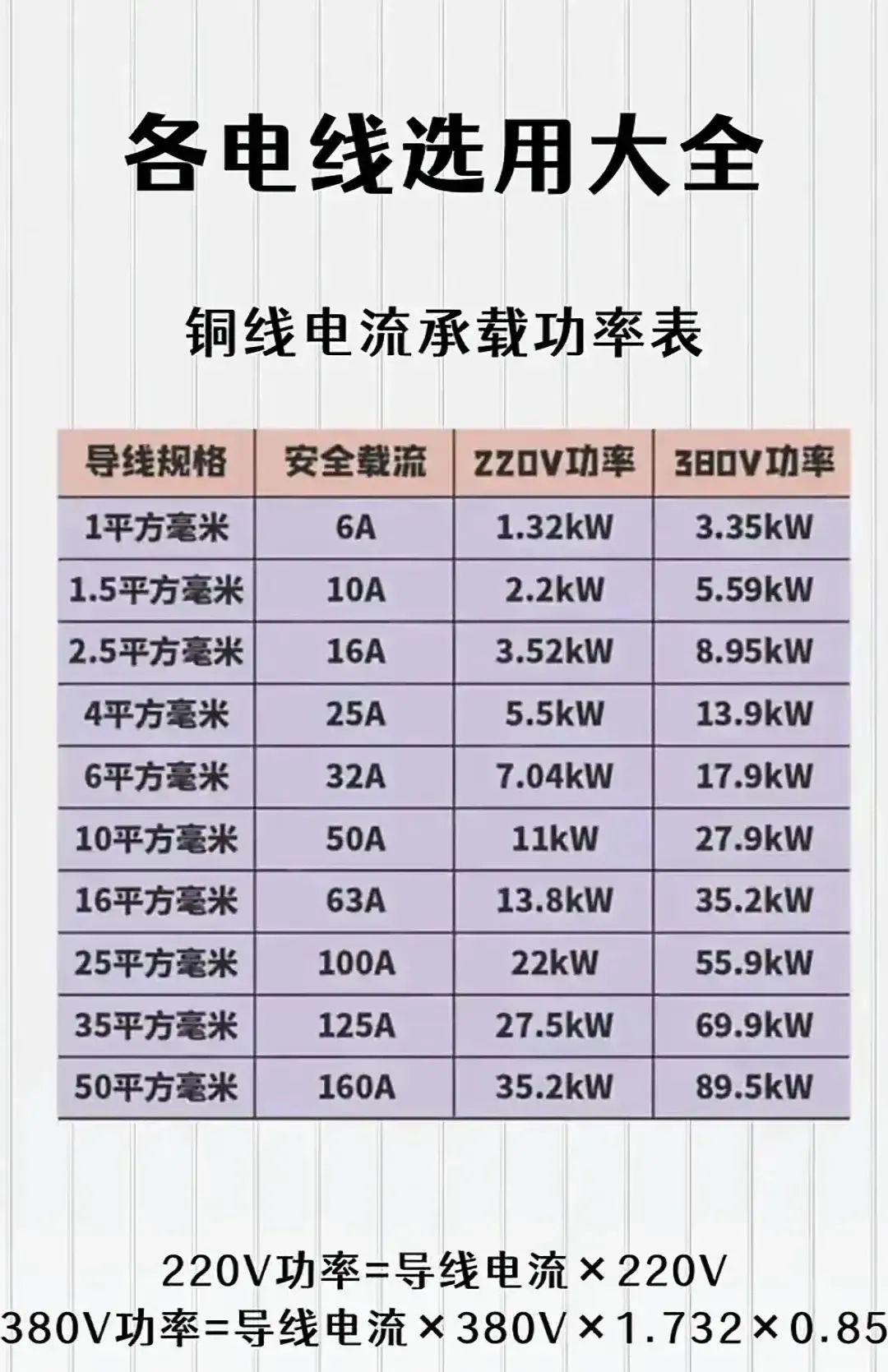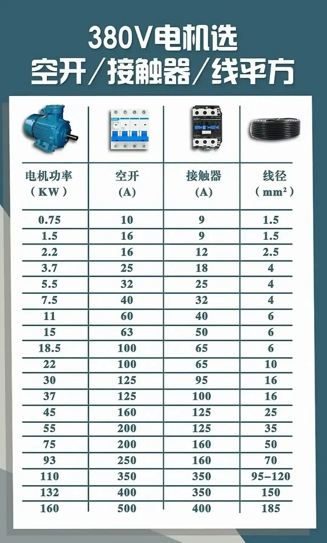 28.电线选型大全(电机→导线→空开)