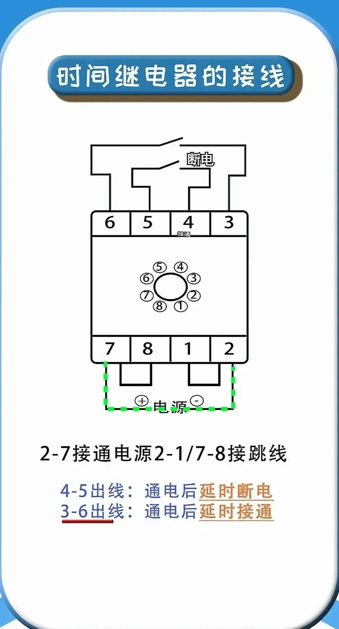 ②.延时通电接线方法