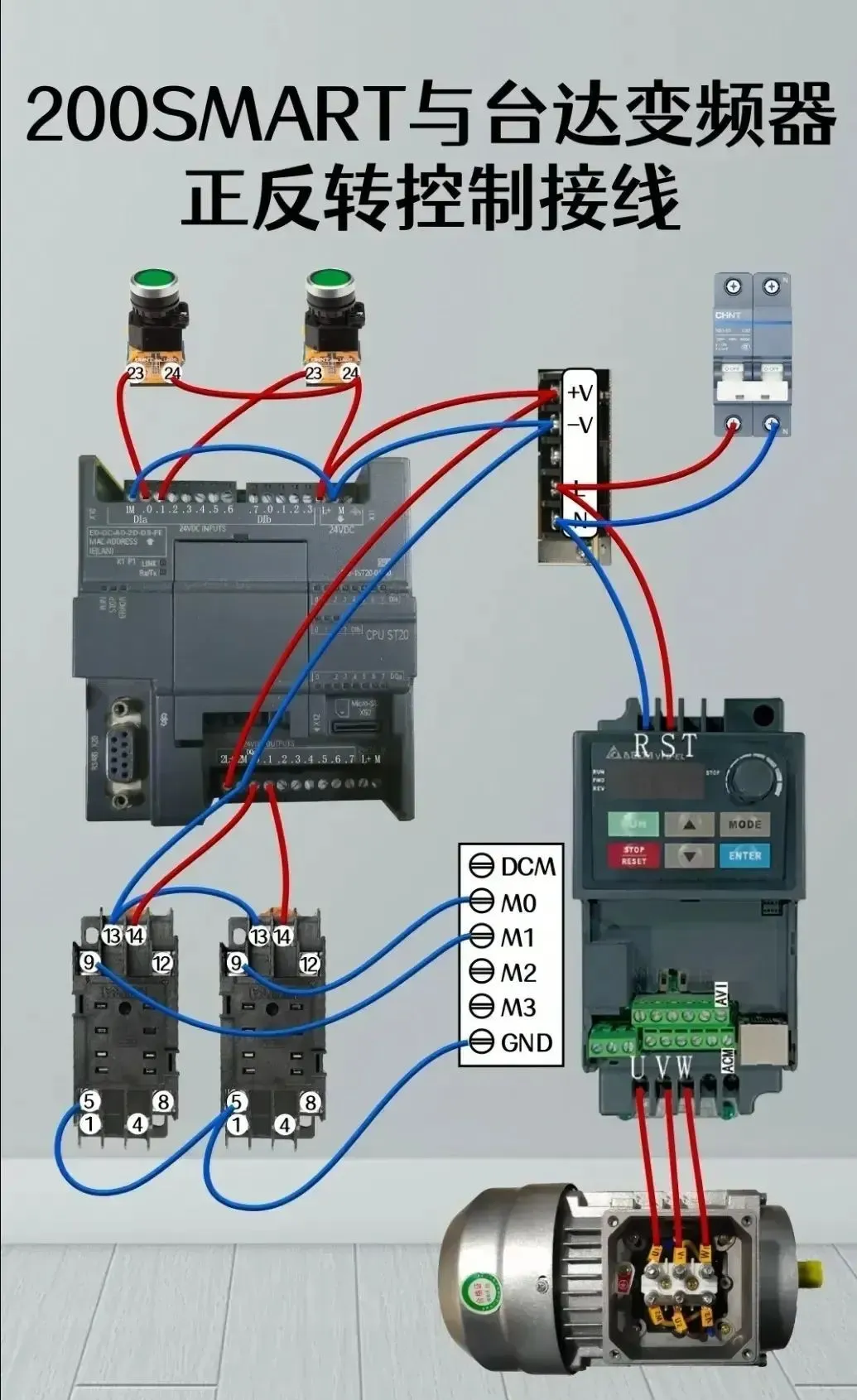 6.200SMART与台达变频器正反转控制接线图
