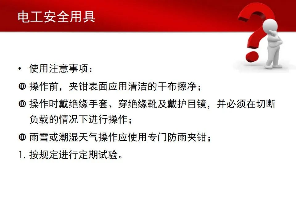 (1)在使用电工钢丝钳之前,必须检查绝缘柄的绝缘是否完好,绝缘如果损坏,进行带电作业时非常危险,会发生触电事;