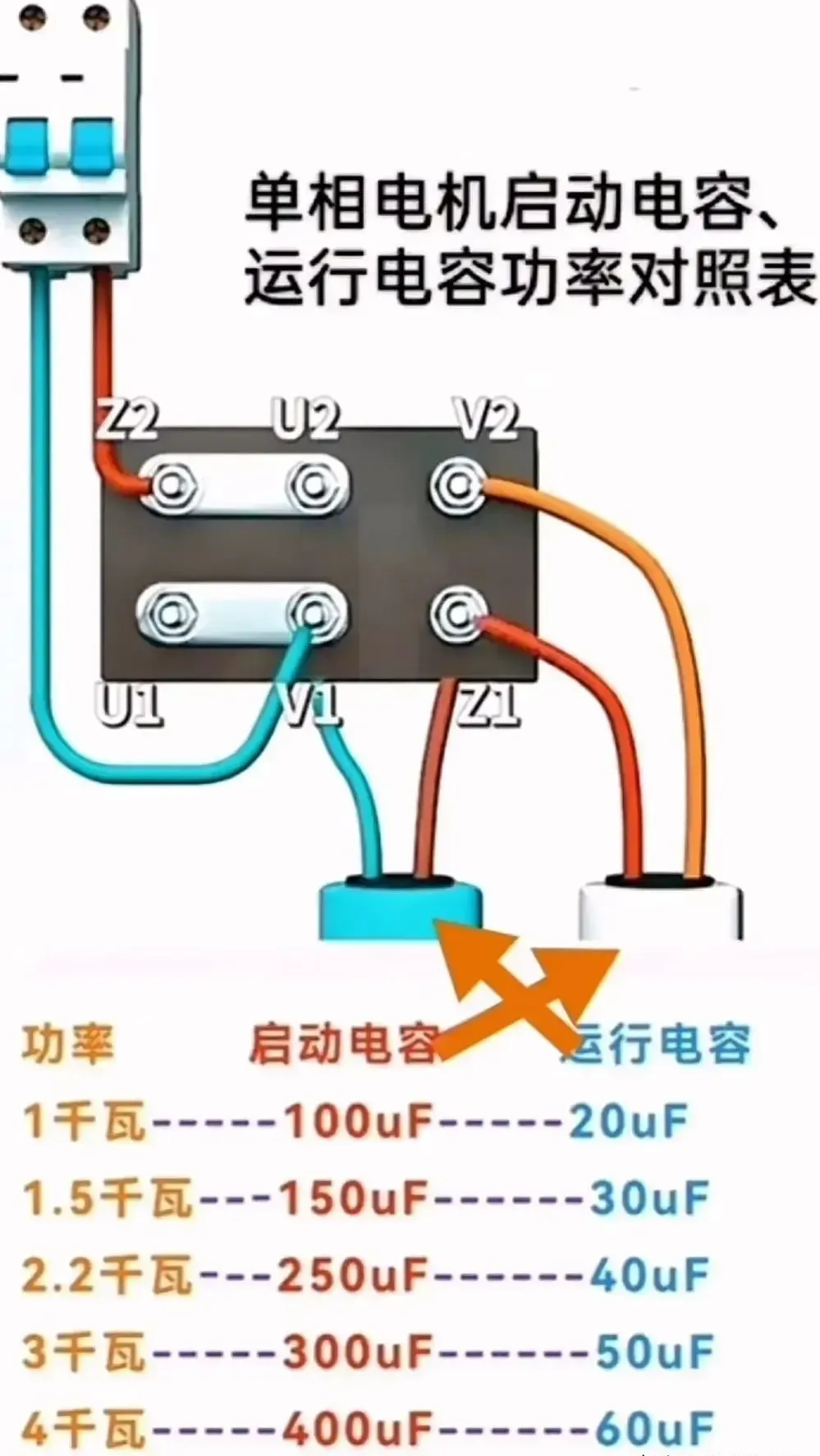 8.单相电机启动电容、运行电容功率对照一览表