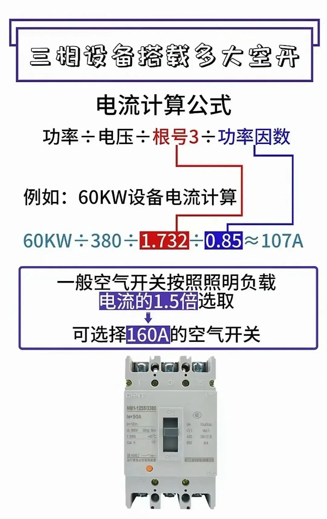 17.三相设备搭载空开的选型(含电流计算公式和案例分析)