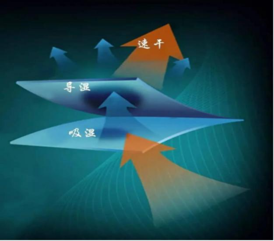 国内最早引入吸湿排汗或吸湿速干概念的产品是基于天然纤维的特性而开发的功能性纺织产品。为了改善因棉纤维易吸湿但不易干的特性而带来的不舒适感,人们开始考虑是否可以通过纱线或织物组织结构的改变,甚至通过后整理的方式来加快水分的传导和蒸发,从而达到吸湿速干的效果,当年曾风靡一时的涤盖棉产品就是一个典型的例子。之后,随着纤维技术的发展,基于差别化合成纤维为主要原料的导湿速干产品已经开始进入市场。