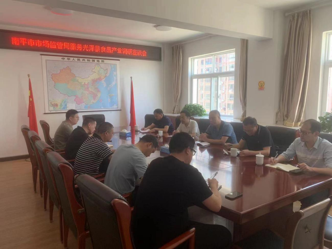 5月14日下午,在县市场监管局召开座谈会。会上,林森指出,光泽县是全国唯一的“中国生态食品城”,要充分发挥自身优势,聚焦生态产业化,以打造千亿食品加工产业为引擎,以食品安全监管为抓手,推动食品产业科技创新,全力做大做强做优食品产业,并就我县食品产业的监管工作提出三点建议: