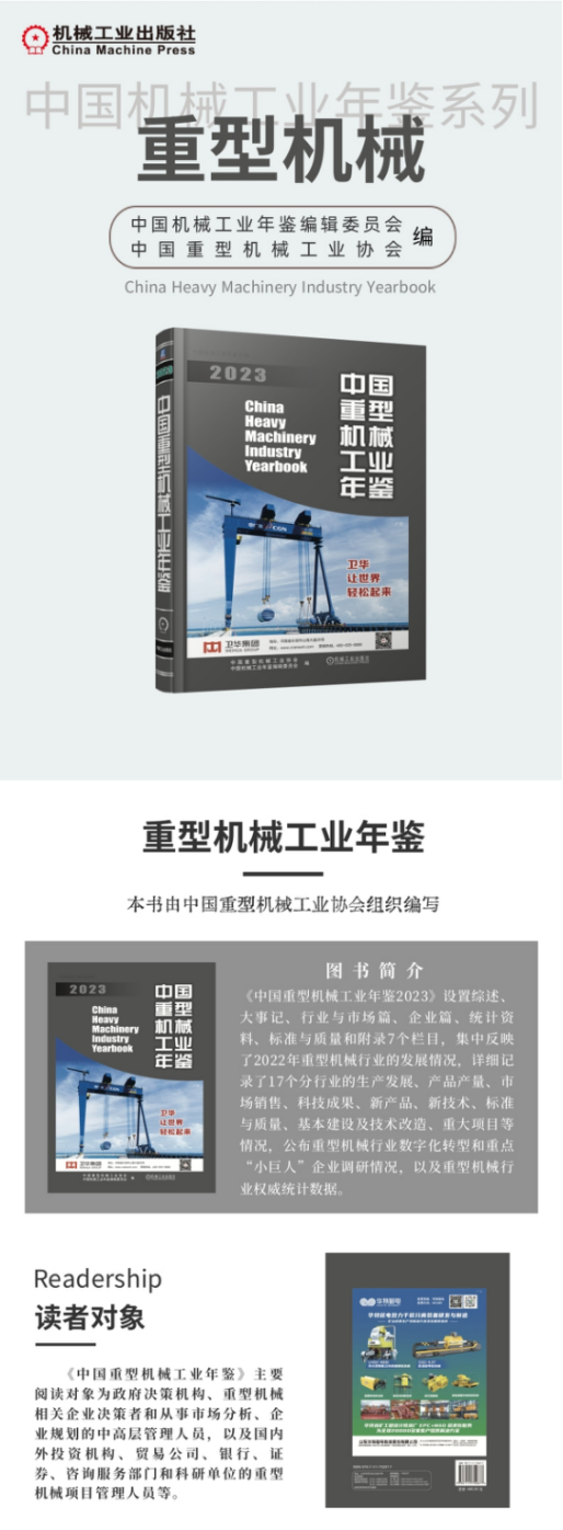 首先,作为一本权威的行业指南,《中国重型机械年鉴2023》全面收录了行业内众多重要企业的最新发展动态。您将了解到各大企业的项目进展、技术创新和市场趋势分析,以及他们在行业中的竞争地位。这些详尽的信息将帮助您把握市场脉搏,做出明智的决策。