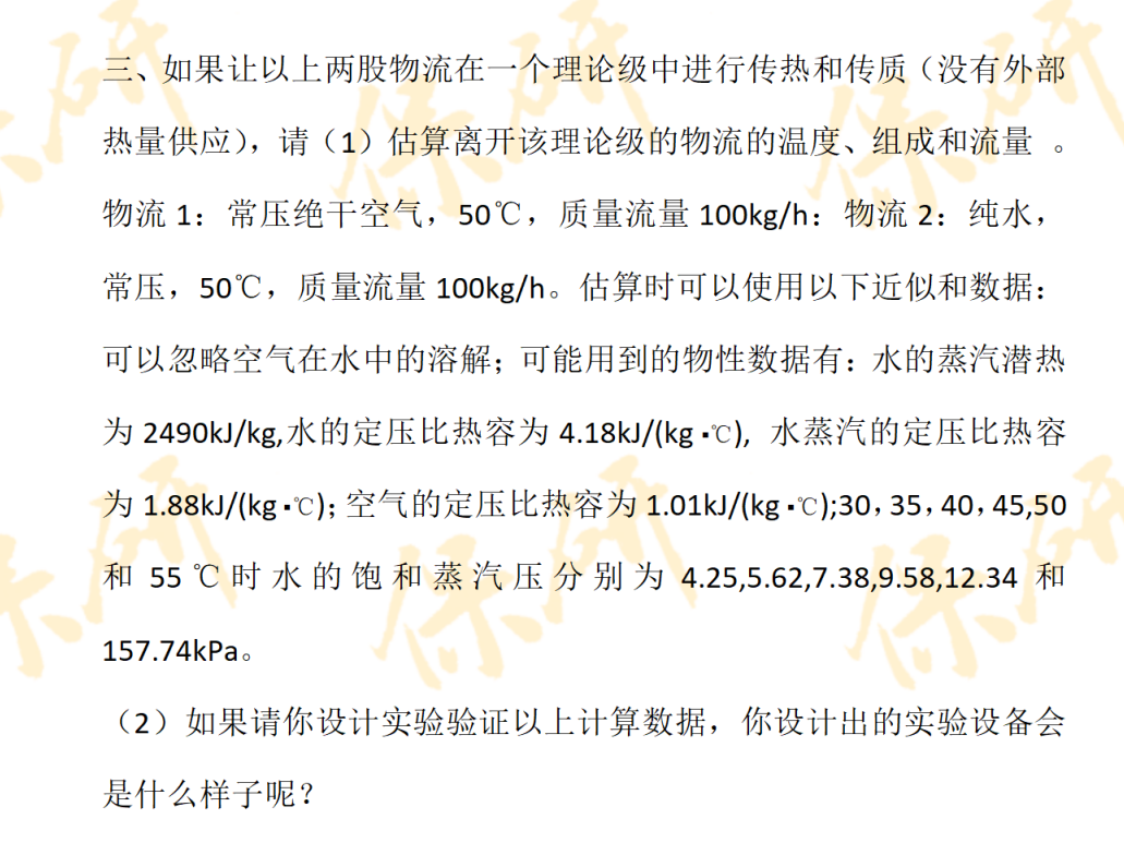 (A)化工原理理论为现场机考,由每位队员分别独立完成。比赛内容包括流体流动、流体输送机械、传热理论与设备、传质过程基础、吸收、蒸馏、气液传质与分离设备、干燥。