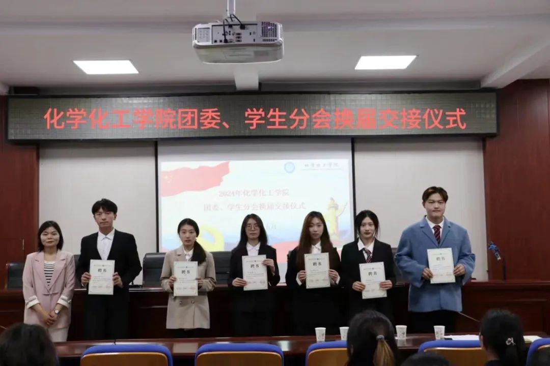 2024年5月9日,化学化工学院于三楼报告厅举办团委、学生分会换届交接仪式,本次换届仪式由闫佳敏主持,李咏波老师出席本次会议,团委、学生分会全体成员积极参与。