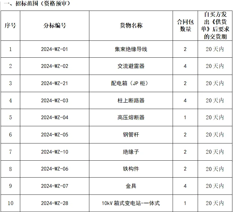项目建设单位为北京华商伟业资产管理有限公司(以下简称华商伟业公司),项目资金来自华商伟业公司所属各子公司自有资金,出资比例为100%,资金来源已落实,招标人为北京华商伟业资产管理有限公司,并委托北京京供民科技开发有限公司为招标代理机构。项目已具备招标条件,现对该项目进行公开招标。本项目积极响应《中共中央国务院关于开展质量提升行动的指导意见》,倡导潜在投标人用先进标准引领产品质量提升,有效治理质量突出问题,推动形成优质优价的采购机制。为保障电网和设备本质安全,维护良好电工装备质量生态环境,确保投标人提供优质产品。招标人有权对违反“投标函”承诺的投标人加大不良行为处理力度。●详见货物清单。其中,货物清单的“交货时间”为参考时间,实际交货时间以供货单约定为准。本项目协议库存供货期限详见合同协议书。3.投标人资格要求