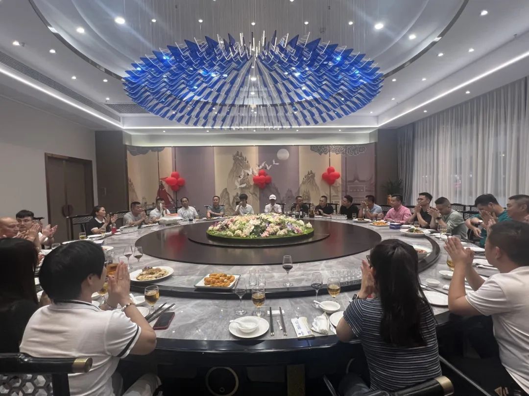 晚上考察团抵达粤汇和酒家亚运城店品鉴晚宴。在晚宴上,广州展卓公司高管与考察团成员进行了深入交流。