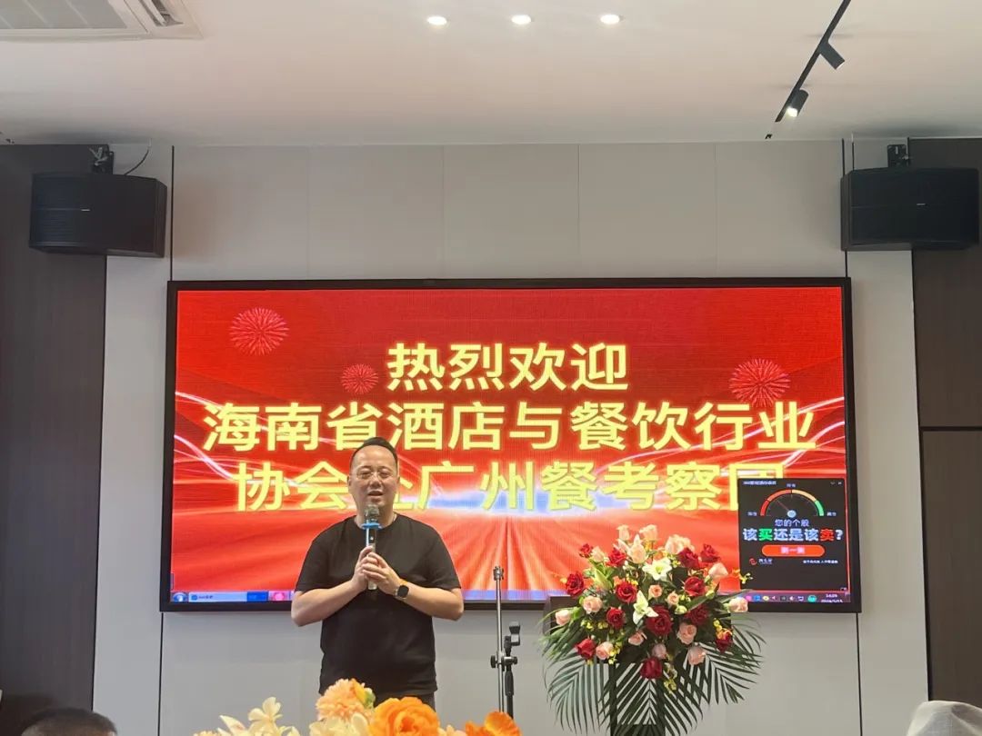 15日上午抵达广州后,考察团前往“邑家人岭南四合院”参观考察,受到黄晓峰董事长携团队热情欢迎和接待。黄晓峰董事长在交流中表示,首先对海南同行的到来表示热烈欢迎,并希望每年5月成为邑家人与海南同行相聚在岭南四合院的美好日子,不断深化与海南餐饮行业同行的友谊。同时分享了他们以菜品创新和调整菜品结构等方式来应对当时餐饮市场变化的心得和做法。