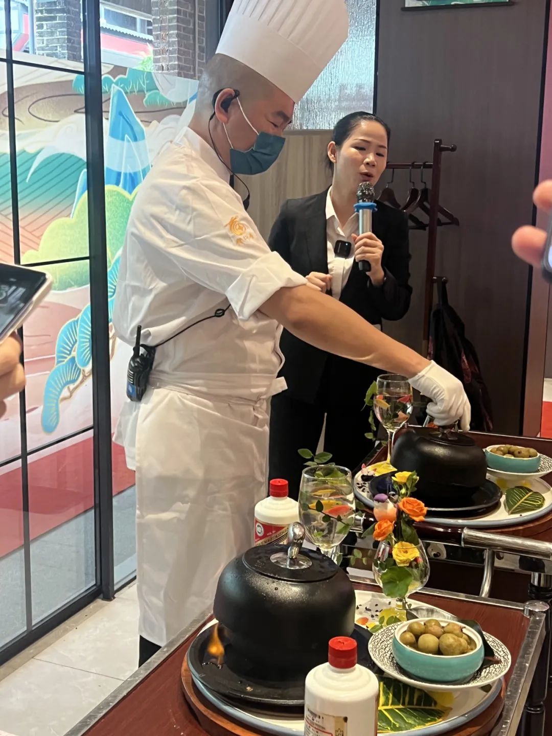 结束后考察团抵达黄沙金港鹅潭酒家与海南省酒餐协特邀副会长、广州圣海食品贸易有限公司陈志刚董事长进行交流及晚宴品鉴。