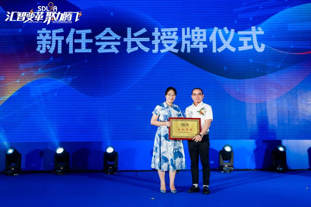 朱艺婷书记为协会会长梁锡强颁发会长牌匾