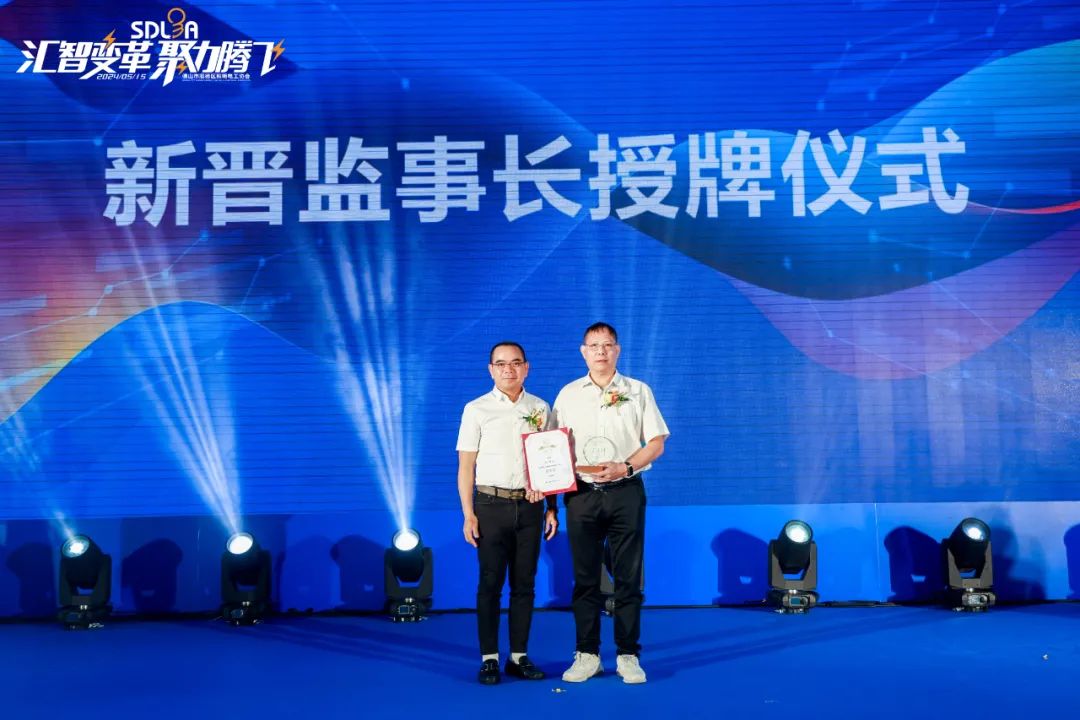 梁锡强会长为第四届协会监事长张广辉颁发牌匾和聘书