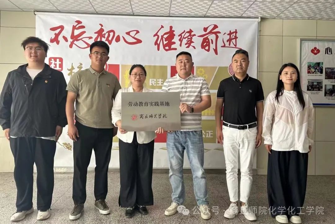 为全面贯彻党的教育方针,落实立德树人根本任务,把劳动教育纳入人才培养全过程,提高学生的实践创新能力和劳动能力,推动我院劳动教育高质量发展,5月16日,化学化工学院赴商丘市睢阳区东方街道办事处电业社区开展劳动教育实践基地签约暨授牌活动。电业社区党支部书记董华君、副书记曹辉、东方街道团工副书记张迪,我院党委副书记张颜梅、学工办副主任郭冠群、学生代表参加活动。