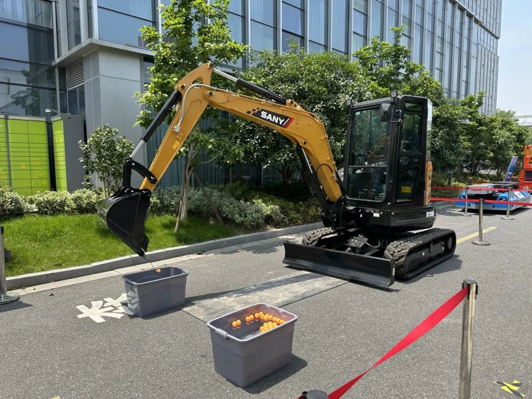 在活动现场,挖机师傅操作SY35U,通过水中捞球的游戏与观众朋友们表演互动,精彩展现了三一微挖的操控便捷性与灵敏度,获得了在场的各位专家学者及行业工作者的一致好评。