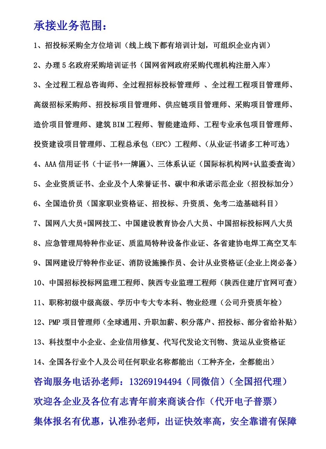 5名政府采购培训证书(入库必备)☞(点我了解详情)