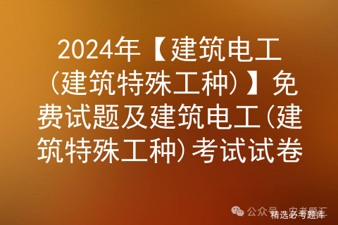 2024年建筑电工(建筑特殊工种)免费试题为正在备考建筑电工(建筑特殊工种)操作证的学员准备的理论考试专题,每个月更新的建筑电工(建筑特殊工种)考试试卷祝您顺利通过建筑电工(建筑特殊工种)考试。
