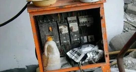 隐患二十二:配电箱内存放大量杂物,箱体无门,电器之间距离偏小,带电明露等。