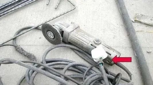 隐患十:I类手持电动工具没有进行保护接零,电源线为塑料线并有接头。