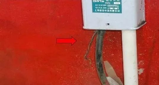 隐患二十四:电箱出线从箱门位置出,容易夹断电缆发生事故。