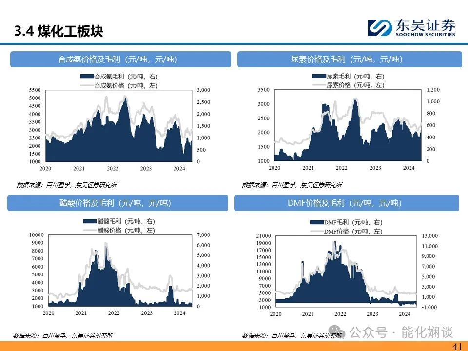 【煤化工板块】本周合成氨/尿素/DMF/醋酸行业均价为3004/2286/4658/3217元/吨,环比分别+128/+58/-152/+87元/吨,合成氨/尿素/DMF/醋酸行业毛利分别为819/509/-497/294元/吨,环比分别+115/+41/-168/+46元/吨。