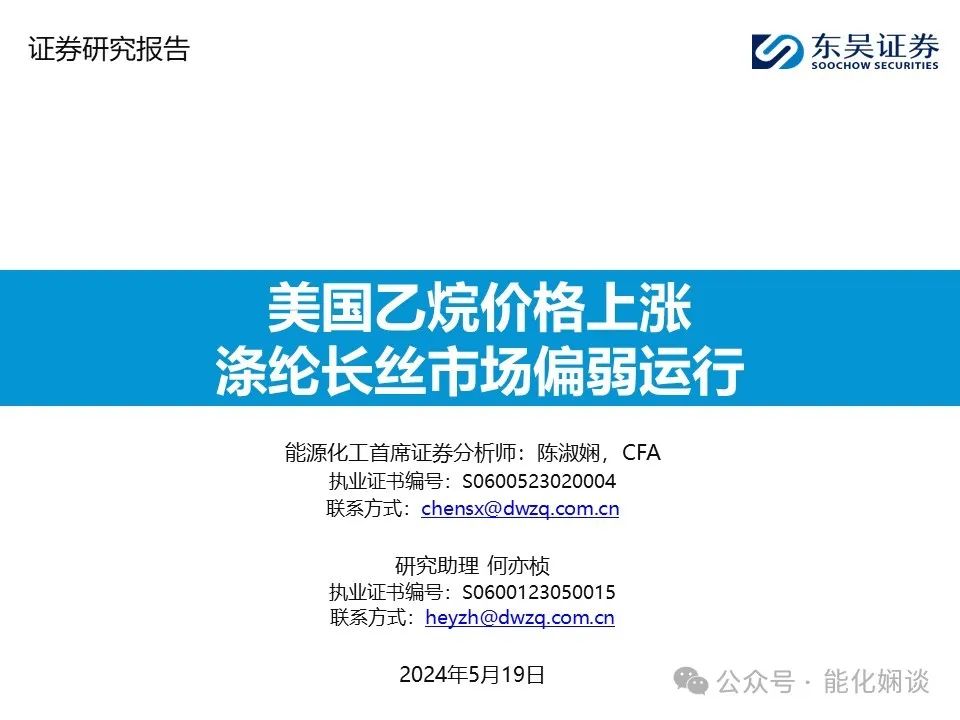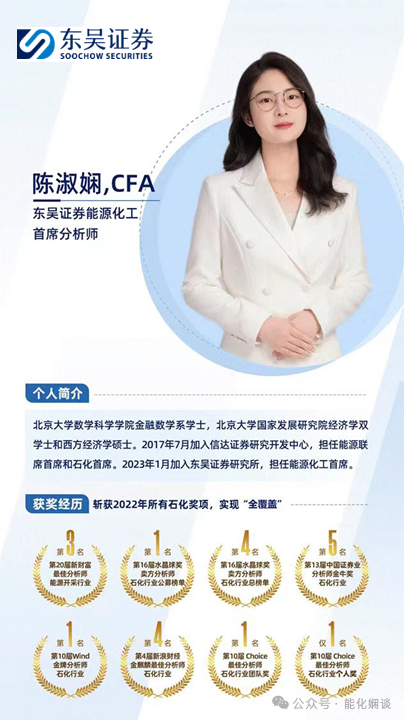 本公众订阅号(微信号:能化娴谈)由东吴证券研究所能源化工陈淑娴团队设立,系本研究团队研究成果发布的唯一订阅号。