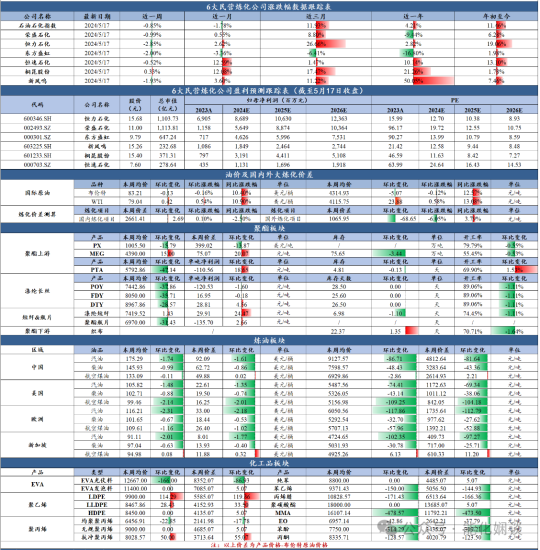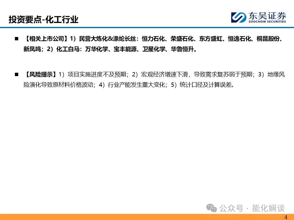 【相关上市公司】1)民营大炼化&涤纶长丝:恒力石化、荣盛石化、东方盛虹、恒逸石化、桐昆股份、新凤鸣;2)化工白马:万华化学、宝丰能源、卫星化学、华鲁恒升。