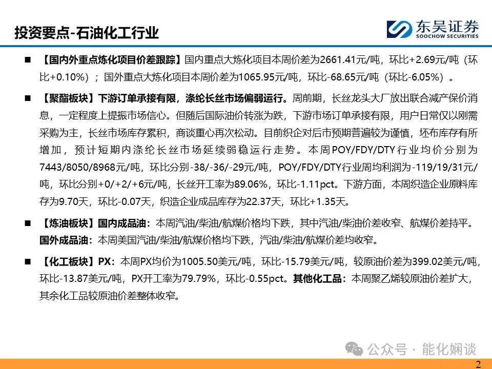 本订阅号不是东吴证券研究所能源化工陈淑娴团队研究报告的发布平台,所载内容均来自于东吴证券研究所已正式发布的研究报告或对已发布报告进行的跟踪与解读,如需了解详细的报告内容或研究信息,请具体参见东吴证券研究所已发布的完整报告。