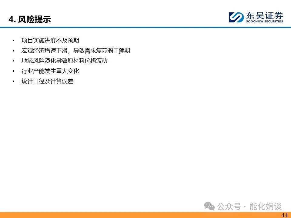 【风险提示】1)项目实施进度不及预期;2)宏观经济增速下滑,导致需求复苏弱于预期;3)地缘风险演化导致原材料价格波动;4)行业产能发生重大变化;5)统计口径及计算误差。