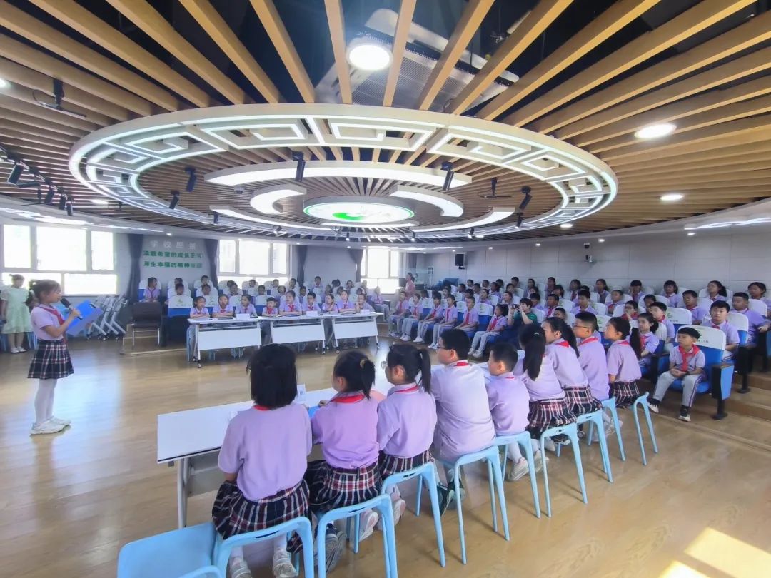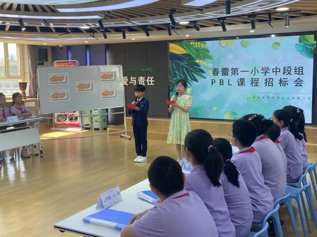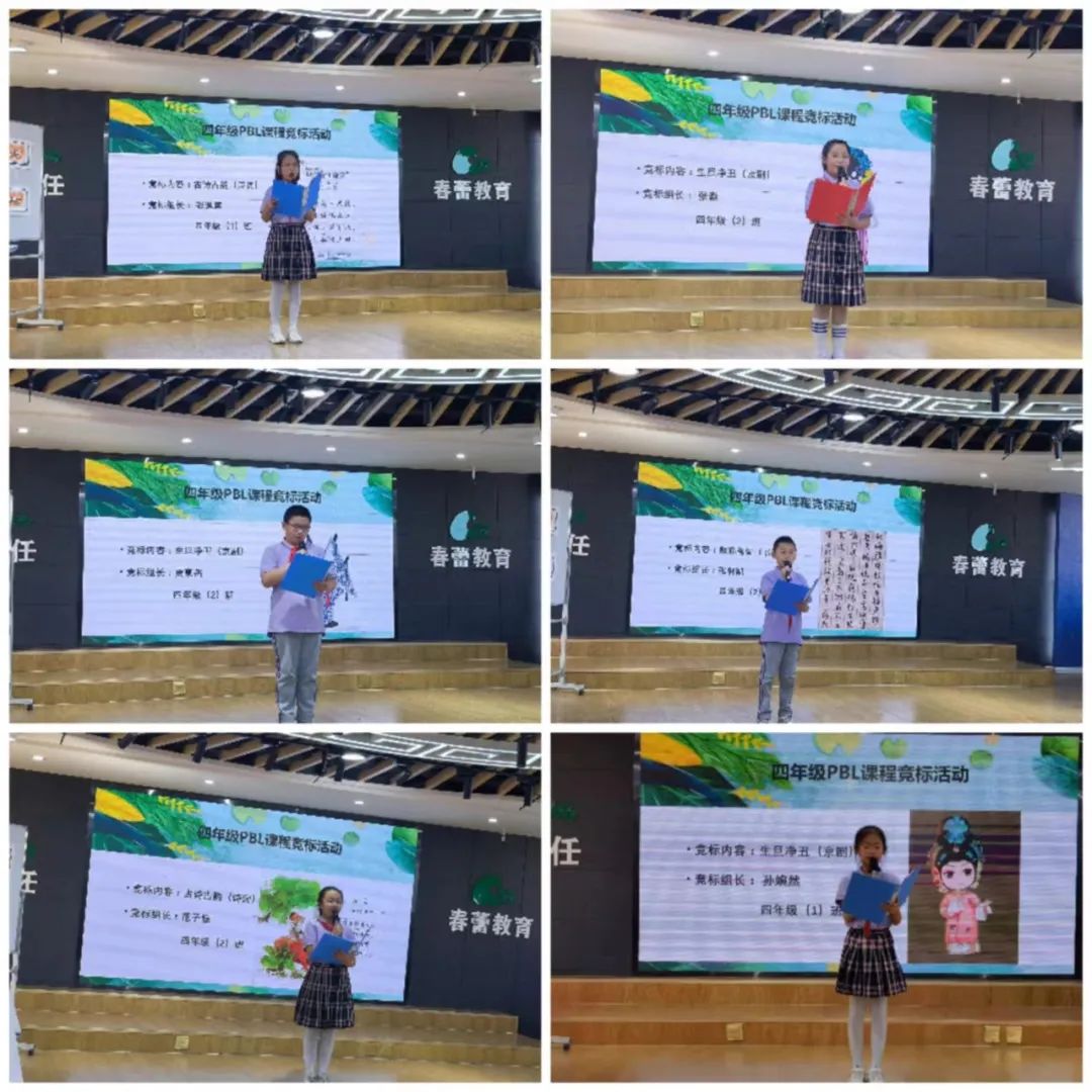 5月15日,中年级段的同学们在实践中心多媒体教室举行了PBL课程招标会。中年级的同学们先以小组为单位在班级征集想要研究的方向,再集体举行PBL课程招标会,由组长们进行竞标演讲,最终确定三、四年级的研究题目分别为“时空对话”和“生旦净丑”。