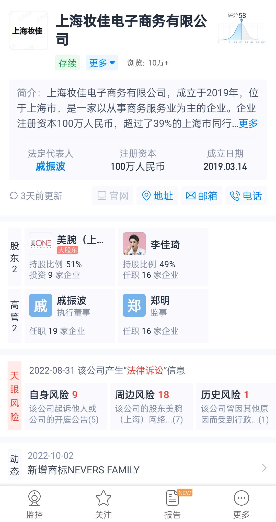 另一方面,是充分的尊重。戚振波的尊重不是口头上的尊重,而是把李佳琦当成了合伙人对待,二者是平等的关系。天眼查显示,李佳琦与戚振波共同成立了多家公司,可以说是“有钱一起赚”。