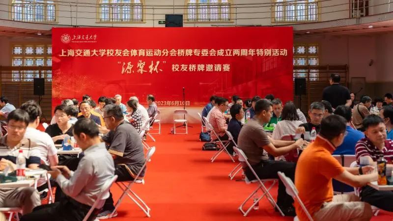 6月10日,上海交通大学校友会体育运动分会桥牌专委会成立两周年特别活动“源聚杯”校友桥牌邀请赛在徐汇校区体育馆举行。
