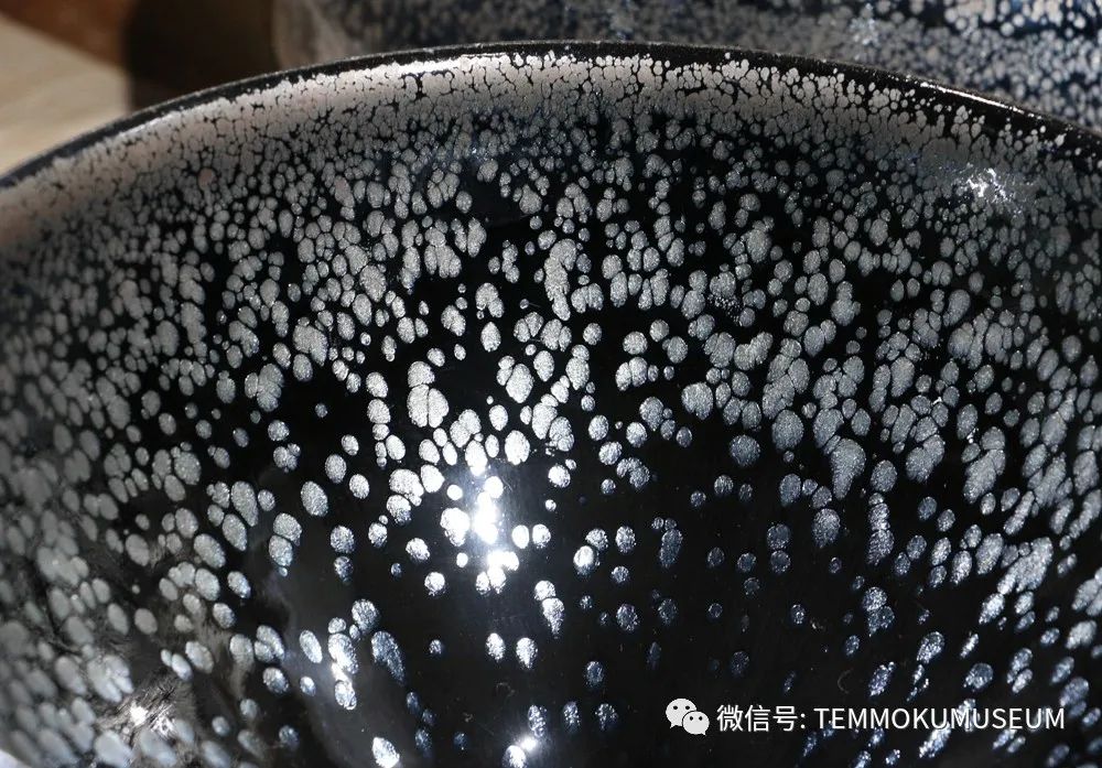 信:是的,黑底银斑的胎体、釉水含铁量都很高。含铁高晶体会很满,含铁低油滴不够圆,不够大。兔毫釉含铁会更低一些。泥胎能决定所有的花色,所以泥胎的含铁量很重要。