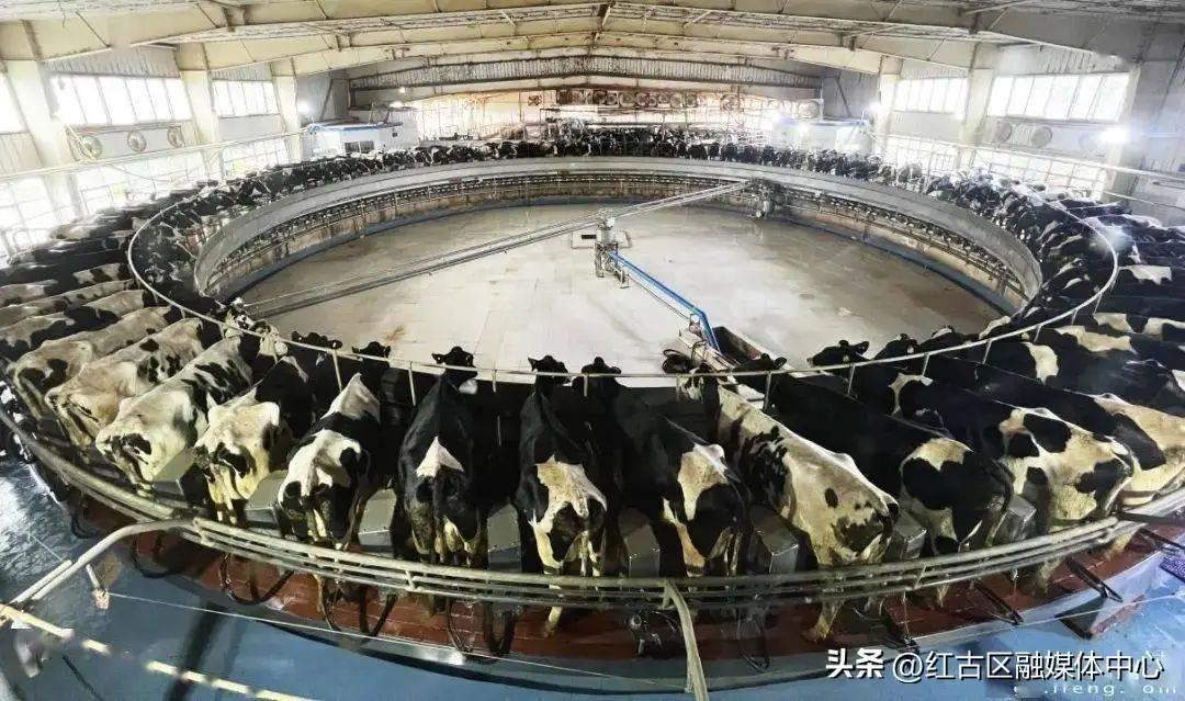 走进红古区花庄镇的甘肃荷斯坦奶牛繁育示范中心,一头头奶牛排队进入80位转盘式全自动挤奶机,伴随着舒缓的音乐,智能挤奶系统按序完成奶牛乳房仿生按摩、自动挤奶、自动清洗消毒等全过程,日产鲜奶50余吨,牛奶质量指标达到国际一流水准。这是省市农业产业化重点龙头企业和农业部确定的国家级奶牛标准化示范场,近年来企业将生态循环效益作为重中之重,收购饲草料带动近万名农户种植玉米,增收6000万元,解决就业100多人,让周边农民的生活水平大大的提高。