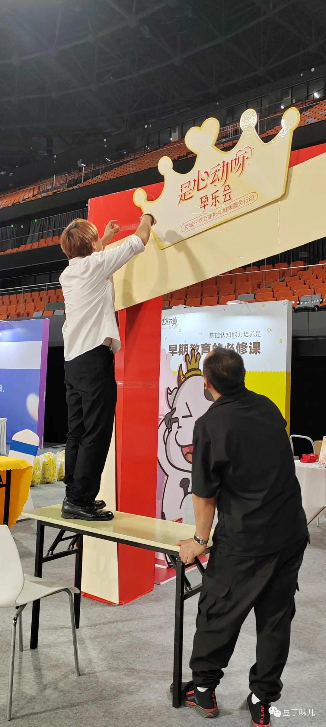 搭建当天,豆丁们除了搬运物资,现场所有铁马和道旗的摆放、移动,场地内广告等的对接联系,协调沟通,以及场方要求的临时紧急文件,都在操心,在行动,没有停止过......
