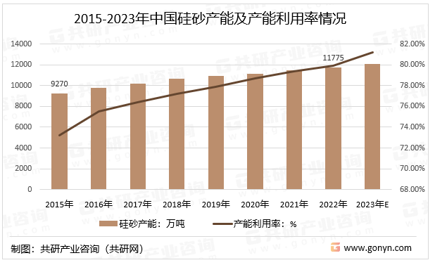 2015-2023年中国硅砂产能及产能利用率情况